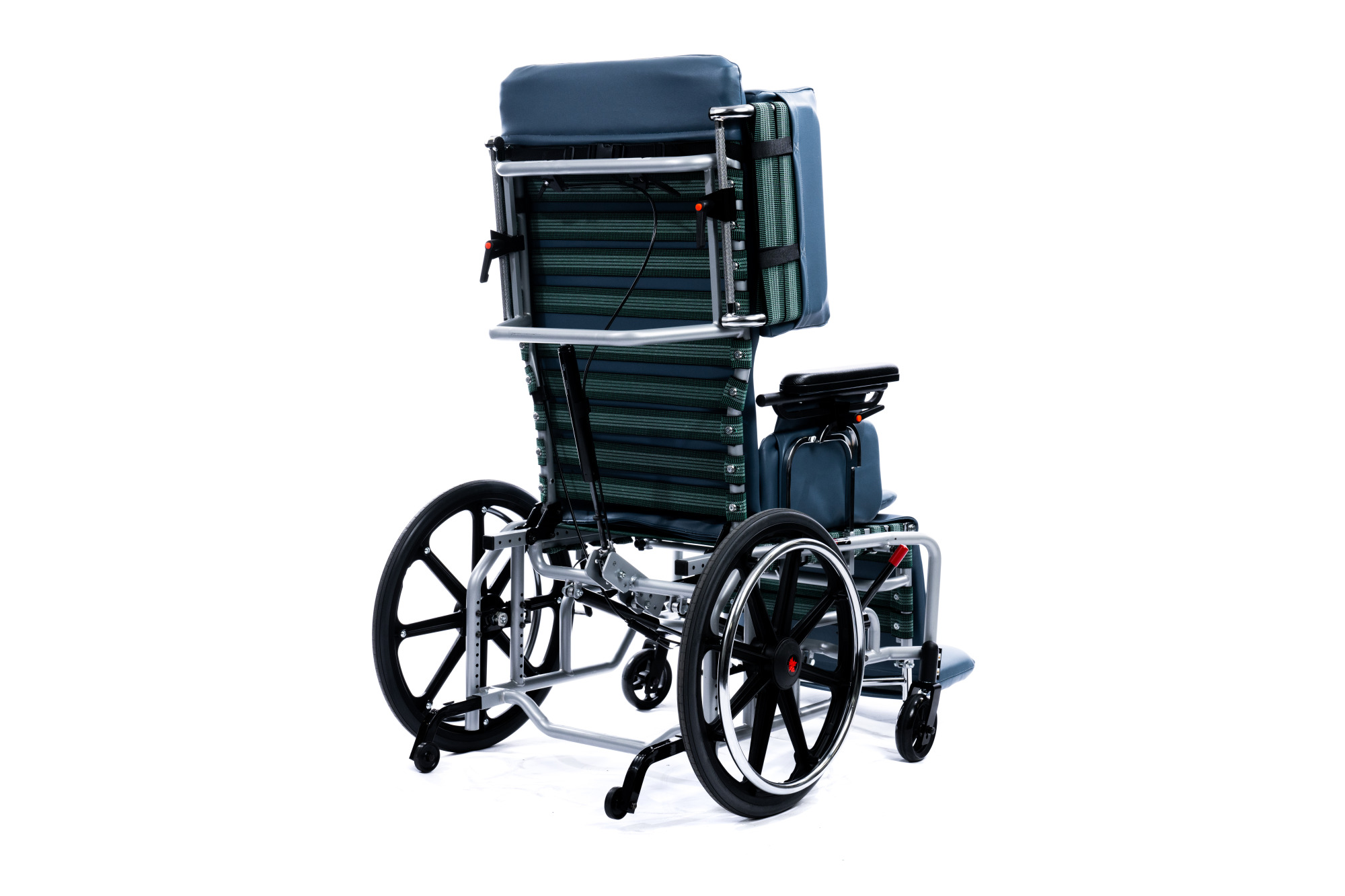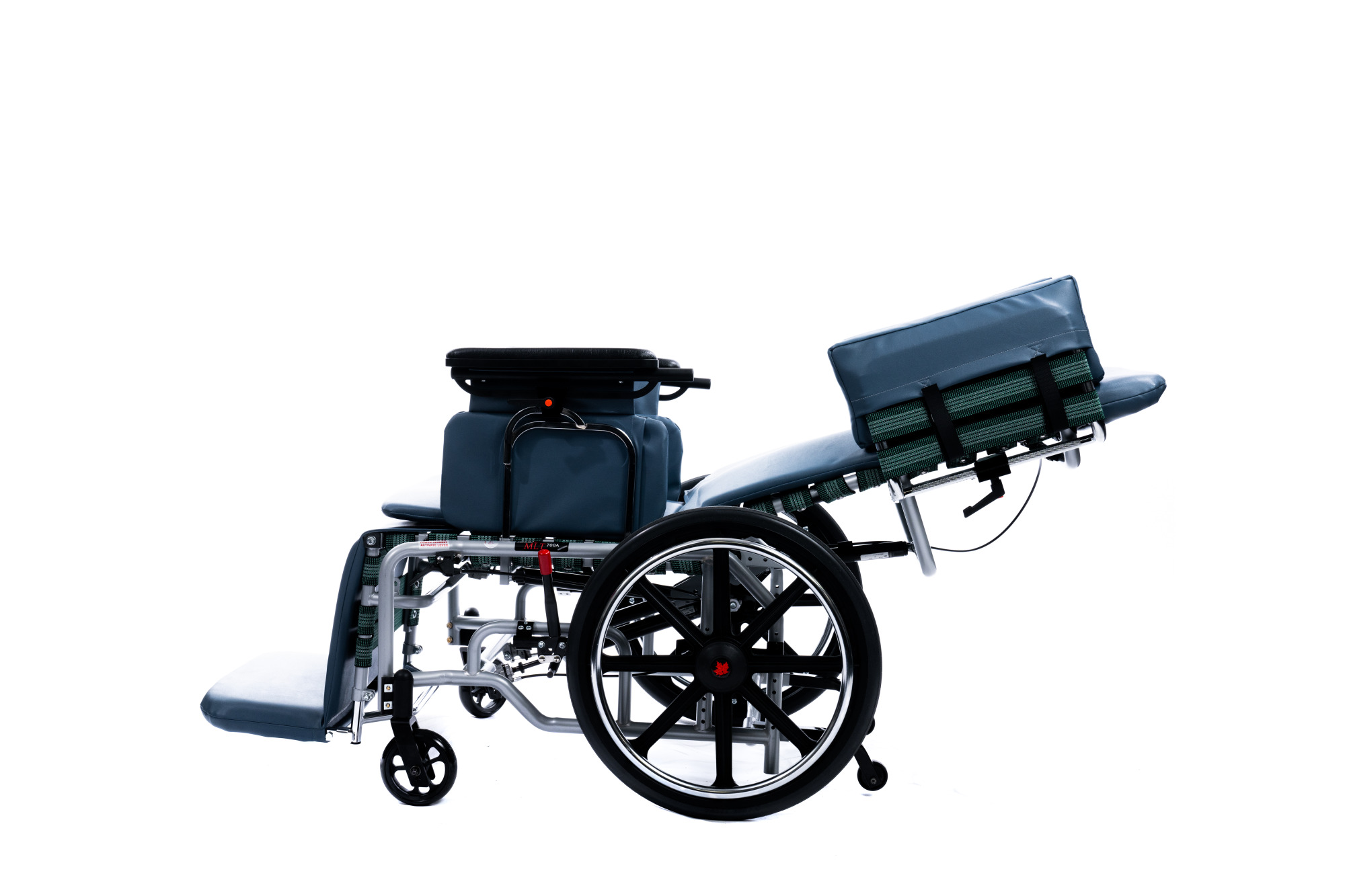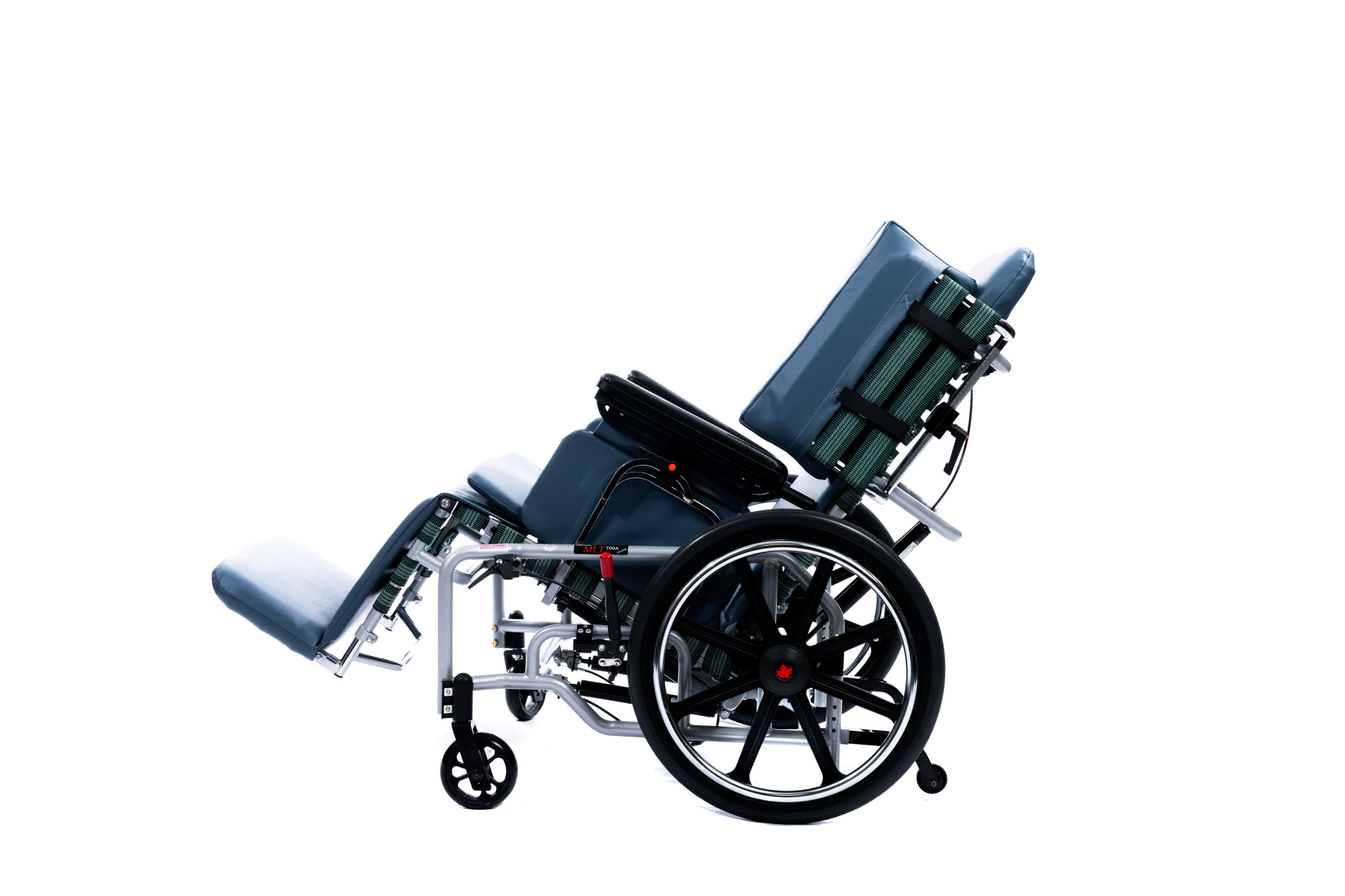 The MLT is a geriatric tilt and recline steel frame manual wheelchair. Its frame includes tension straps to provide extended comfort for it’s user. It also offers the choice of 4 casters or 2 large real wheels.